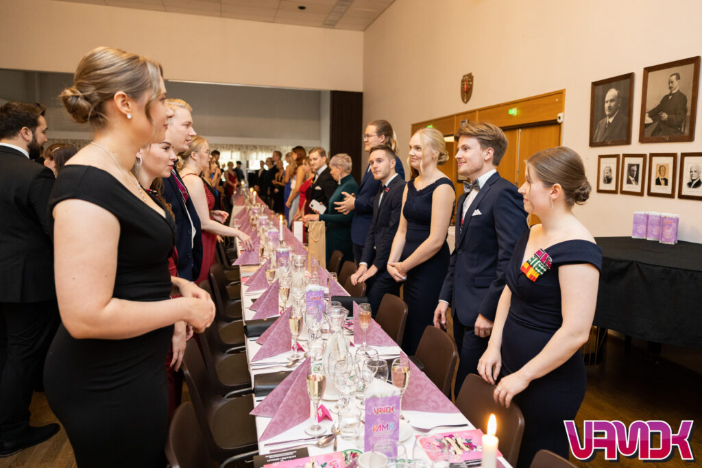 At anniversary parties, celebrations typically revolve around VAMOK or a subject association, with attendees dressing in formal attire. The dress code for anniversary parties is usually a tailcoat or dark suit for men, and a full-length evening gown or cocktail dress for women.